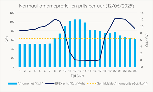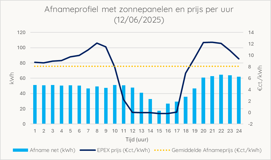 Wanneer een organisatie zelf opwekt met zonnepanelen verandert niet alleen de hoeveelheid stroom die je van het net afneemt, maar ook het moment waarop je stroom afneemt. Dit heeft directe gevolgen voor de gemiddelde energieprijs.